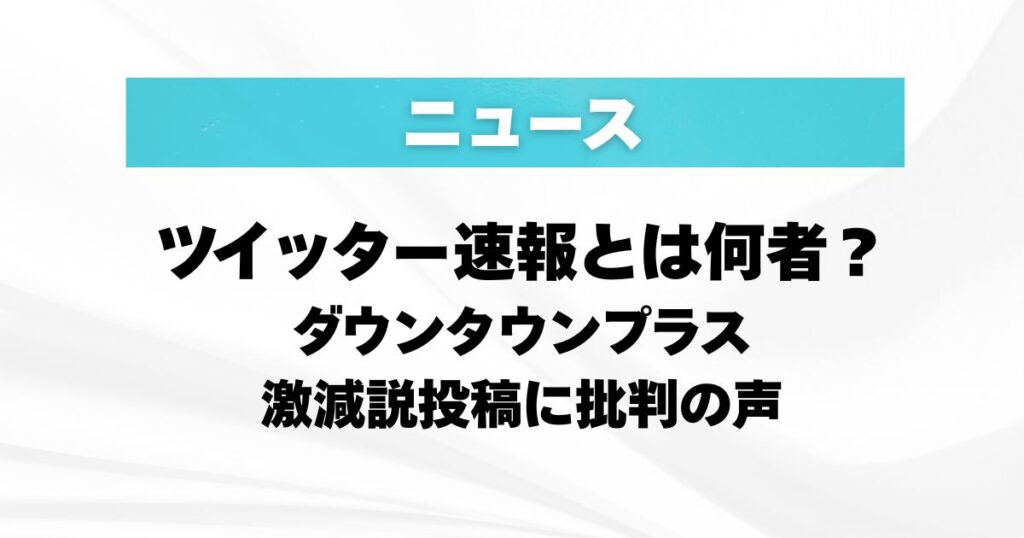 ツイッター速報(ツイ速)とは何者?ダウンタウンプラス激減説投稿に批判の声