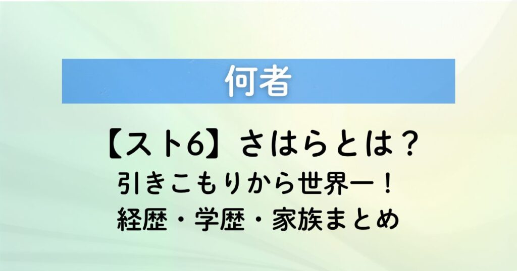 【スト6】さはらは何者?引きこもり転身の経歴・学歴・家族まとめ