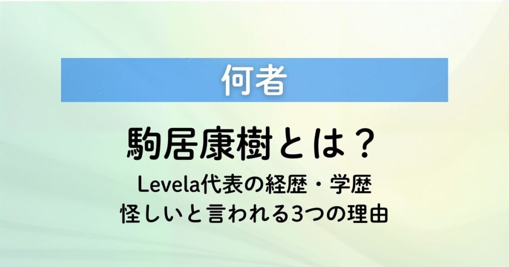 駒居康樹は何者?Levela代表の経歴・学歴と怪しいと言われる3つの理由