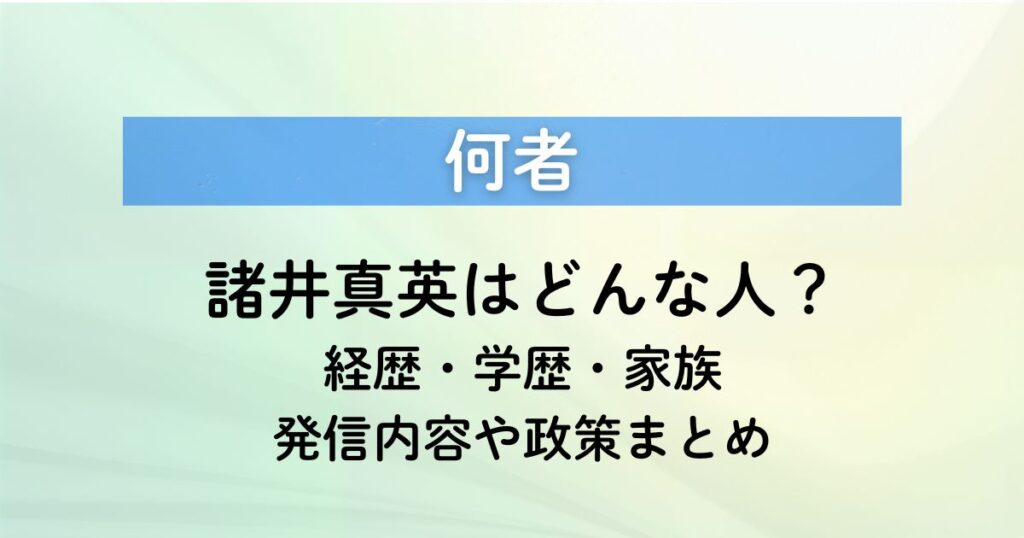 【何者】諸井真英はどんな人?経歴・学歴・家族・発信内容や政策まとめ