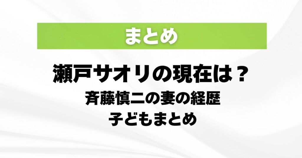 瀬戸サオリさんの現在が気になっている人も多いですよね。 斉藤慎二さんの妻として名前を見かけた人もいれば、もともとどんな経歴の人なのか、 子どもはいるのかまで知りたくなった人もいたのではないでしょうか。 また、名前がよく似ていることから、瀬戸... -