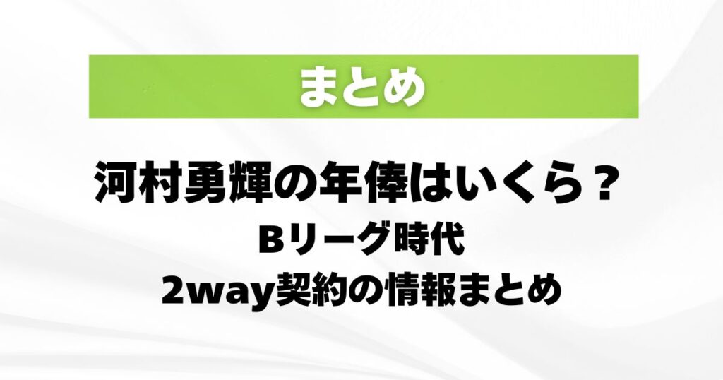 河村勇輝の年俸はいくら?Bリーグ時代と2way契約の情報まとめ
